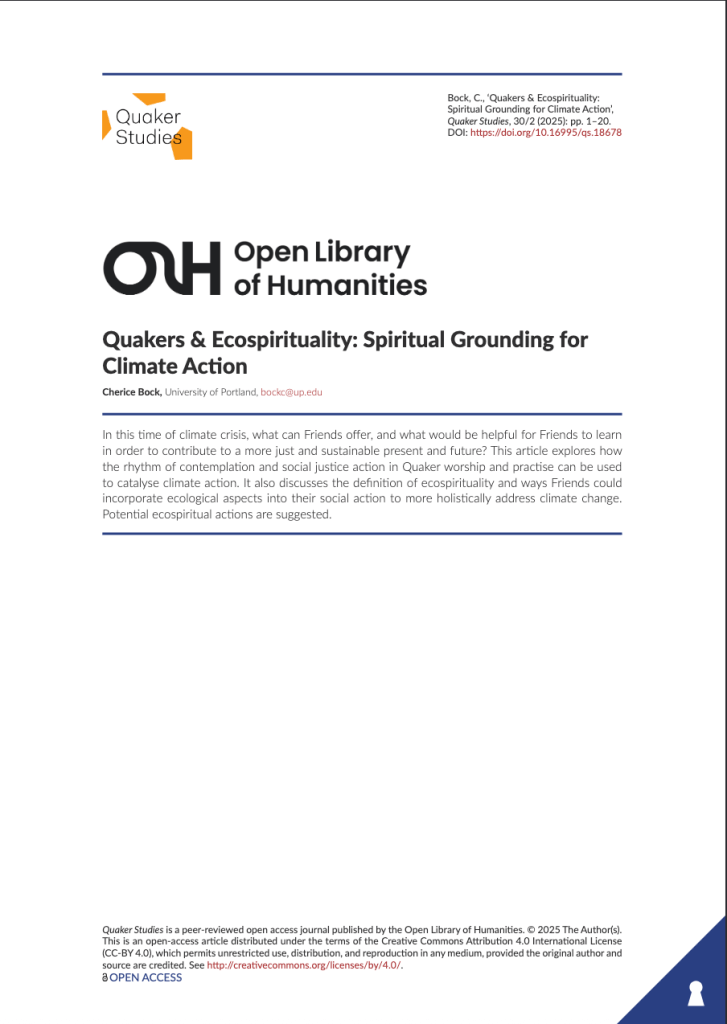 - Quakers & Ecospirituality: Spiritual Grounding for Climate Action, Cherice Bock
